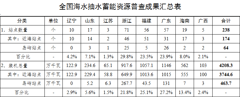 1.全國(guó)海水抽水蓄能資源普查成果匯總表