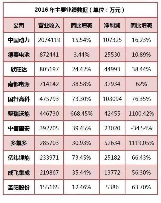 綜合來(lái)看,2016年鋰電池上市企業(yè)在營(yíng)業(yè)收入和凈利潤(rùn)上普遍實(shí)現(xiàn)了兩位數(shù)的增長(zhǎng)。