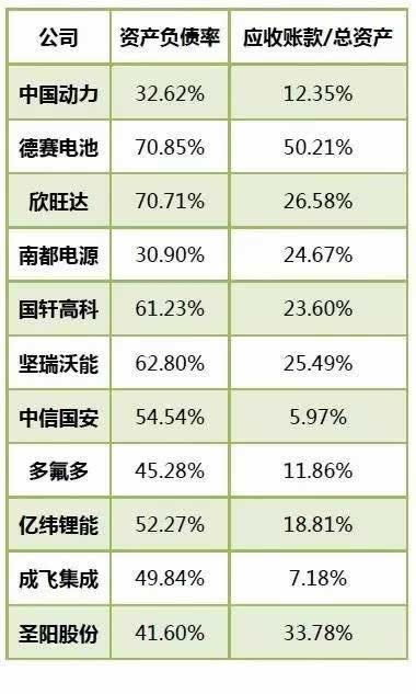 資金風(fēng)險(xiǎn)方面,從資產(chǎn)負(fù)債率看,目前11家上市公司資金情況總體良好,但德賽電池和欣旺達(dá)負(fù)債率偏高,超過(guò)了70%。另有企業(yè)在年報(bào)中提及應(yīng)收賬款回收風(fēng)險(xiǎn),11家公司應(yīng)收賬款占總資產(chǎn)的比例平均值超過(guò)20%,德賽電池這一數(shù)值超過(guò)50%。