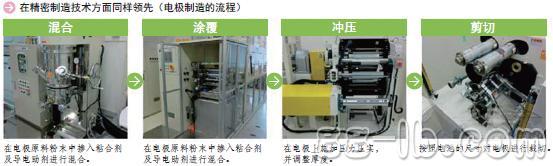 并且,電極是將原料粉末與用來(lái)粘合粉末的粘合劑化學(xué)品進(jìn)行混合,涂覆在集電體(鋁箔及銅箔)上制造而成。鋰離子電池所用的粘合劑需要與電極原料粉末之間具有微妙的兼容性,吳羽公司(KUREHA)及日本瑞翁公司(Zeon)等日本化工企業(yè)幾乎壟斷了其生產(chǎn)。
