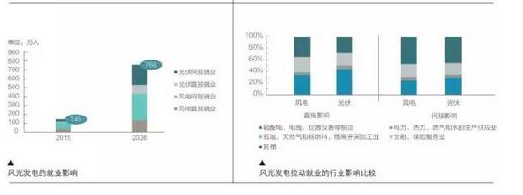 這也意味著到2030年,風(fēng)光發(fā)電帶動的總就業(yè)人口數(shù)接近770萬人,比2015年增長4倍多,相當(dāng)于2015年全國高校畢業(yè)生總數(shù),將產(chǎn)生良好的綠色就業(yè)帶動效應(yīng)。