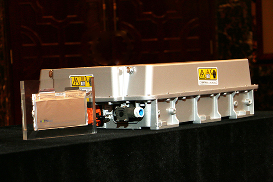 在發(fā)布現(xiàn)場(chǎng),微宏展出了第三代快充電池系統(tǒng)產(chǎn)品,這一全新的錳酸鋰電池系統(tǒng)采用鋁擠出型材和SMC復(fù)合材料,在保證箱體結(jié)構(gòu)強(qiáng)度的前提下實(shí)現(xiàn)了電池組的輕量化設(shè)計(jì),同時(shí)該系統(tǒng)配備微宏新一代MpCO高能量密度電芯,在保持15分鐘快充性能的基礎(chǔ)上,單體能量密度提升至170Wh/kg,同并可實(shí)現(xiàn)7000次的循環(huán)。