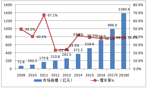 IDC市場(chǎng)是目前對(duì)UPS需求最為旺盛的領(lǐng)域之一。據(jù)相關(guān)機(jī)構(gòu)數(shù)據(jù)統(tǒng)計(jì),過(guò)去8年國(guó)內(nèi)IDC市場(chǎng)復(fù)合增長(zhǎng)率達(dá)到42.3%,其中,2009-2011年間IDC市場(chǎng)處于高速增長(zhǎng)期,每年增速都維持在40%以上;2012年和2013年受宏觀經(jīng)濟(jì)下滑影響,整體市場(chǎng)增速下降到25%以下;此后,一方面政府加強(qiáng)政策引導(dǎo),逐步開放了IDC牌照申請(qǐng),另一方面大數(shù)據(jù)、云計(jì)算等產(chǎn)業(yè)興起,數(shù)據(jù)中心的市場(chǎng)需求不斷增多。2014年IDC市場(chǎng)增速再次超過(guò)40%,2015年市場(chǎng)增速為39.3%,2016年市場(chǎng)增速也達(dá)到了38.1%。據(jù)預(yù)測(cè),今明兩年市場(chǎng)增長(zhǎng)率將繼續(xù)在40%左右,明年IDC市場(chǎng)規(guī)模有望接近1400億元,將明顯拉動(dòng)UPS的需求。