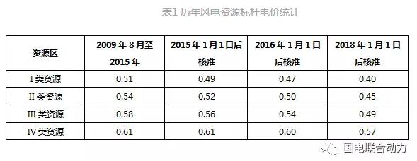 2009年7月國家發(fā)改委發(fā)布《關(guān)于完善風(fēng)力發(fā)電上網(wǎng)電價(jià)政策的通知》,在特許權(quán)招標(biāo)的基礎(chǔ)上實(shí)行標(biāo)桿上網(wǎng)電價(jià)政策。并根據(jù)規(guī)?;l(fā)展需要,要求制定實(shí)施可再生能源發(fā)電全額保障性收購制度,以應(yīng)對(duì)大規(guī)模風(fēng)電上網(wǎng)和市場(chǎng)消納的挑戰(zhàn)。截至2016年12月,標(biāo)桿上網(wǎng)電價(jià)共進(jìn)行了4次價(jià)格調(diào)整,詳見表1。