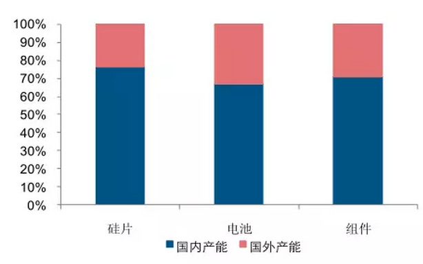 中國(guó)是全球光伏的主要生產(chǎn)國(guó),三大環(huán)節(jié)占比均接近 70%