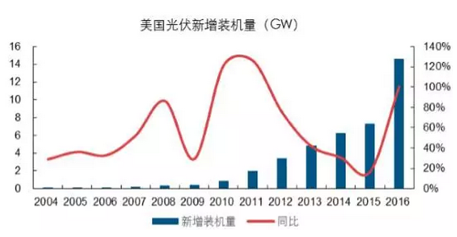 近年來美國(guó)光伏裝機(jī)規(guī)模持續(xù)擴(kuò)張
