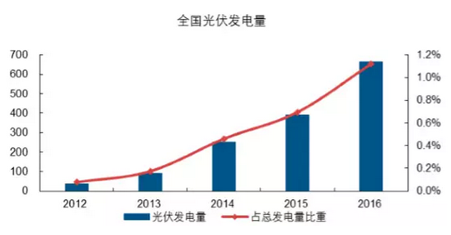 2016 年我國(guó)光伏發(fā)電占總發(fā)電量比重僅 1%左右