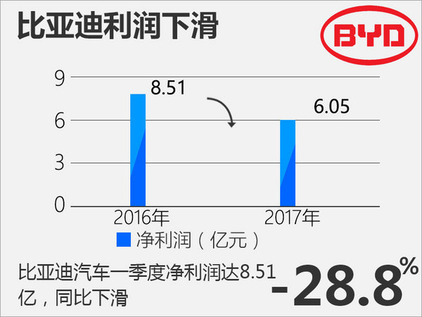 比亞迪日前發(fā)布的一季報顯示,報告期內(nèi),公司實現(xiàn)營收210億元,同比增長3.75%;凈利潤為6.06億元,同比下降28.99%。凈利潤下滑主要是由于新能源汽車領(lǐng)域波動帶來的影響。