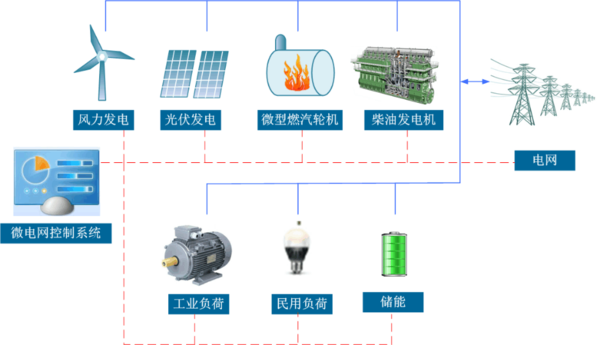 通過(guò)微網(wǎng)控制系統(tǒng),提高可再生能源接入微網(wǎng)的比例,更多消納可再生能源。