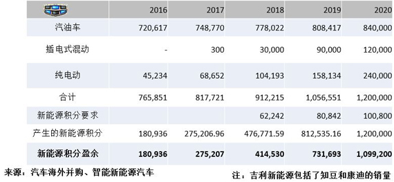 吉利2018年-2020年可分別產(chǎn)生42萬、73萬和100萬左右的新能源積分盈余,吉利也會成為市場上新能源積分的凈賣方。如果按照新能源積分市場5000元每分來計算,則這三年光積分收入就可以為吉利產(chǎn)生20億、36億和55億的收入。