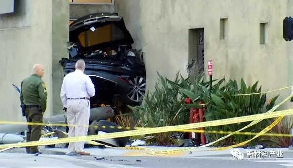 正面領(lǐng)域,Telsa已經(jīng)用NCA動(dòng)力電池的市場(chǎng)成功為業(yè)界樹立了標(biāo)桿。作為一種廣義的三元材料,NCA材料的安全性能遠(yuǎn)遜于鎳鈷錳三元材料,僅與鈷酸鋰材料接近。然而,2015全年Model S累計(jì)銷量為5.05萬(wàn)輛,相較于2014年的3.16萬(wàn)輛,同比增長(zhǎng)60%。安全性方面,雖然偶有起火事故發(fā)生,但多是由于嚴(yán)重事故(高速行駛時(shí)撞擊到路面大塊金屬構(gòu)件)或涉嫌電池濫用(挪威一起起火事故發(fā)生在冬季室外快速充電時(shí)),且至今未有電池引發(fā)的嚴(yán)重人員傷亡事故報(bào)告。唯一一起致人死亡事故發(fā)生在2014年,當(dāng)時(shí)偷車賊為逃避警察追捕,駕駛Model S連撞三輛汽車,最終Model S被撞成兩截,后半部扎入路邊建筑中,而電池并未嚴(yán)重燃燒(圖1)??梢哉f,盡管采用了安全性較差的NCA正極材料,但通過優(yōu)良的電池單體和電池系統(tǒng)設(shè)計(jì),Tesla動(dòng)力電池系統(tǒng)的安全性仍然得到了較好的保證。