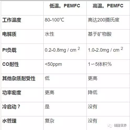 HTPEMFCs不優(yōu)于低溫PEMFC;兩種技術(shù)都在其優(yōu)勢(shì)所在的地方找到了利基。下表總結(jié)了兩種PEMFC變量之間的差異: