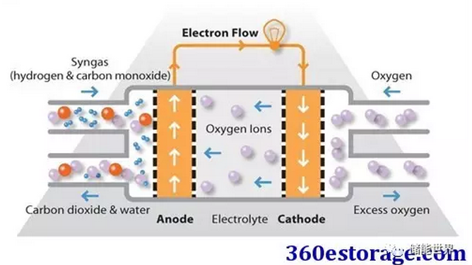 SOFC使用固體陶瓷電解質(zhì),例如用氧化釔穩(wěn)定的氧化鋯,而不是液體或膜。它們的高工作溫度意味著燃料可以在燃料電池本身內(nèi)重整,消除了對(duì)外部重整的需要,并允許單元與各種烴燃料一起使用。與其它類型的燃料電池相比,它們還相對(duì)耐燃料中的少量硫,因此可以與煤氣一起使用。