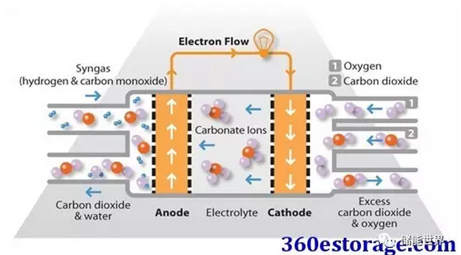 熔融碳酸鹽燃料電池(MCFC)使用懸浮在多孔陶瓷基體中的熔融碳酸鹽作為電解質(zhì)。通常使用的鹽包括碳酸鋰,碳酸鉀和碳酸鈉。