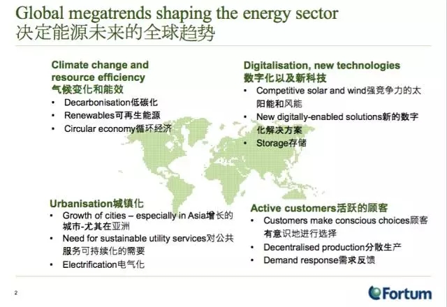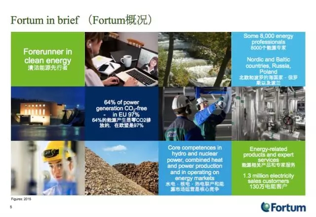 來(lái)自芬蘭的Fortum能源公司(富騰公司)介紹了他們的能源業(yè)務(wù)。2015年富騰公司銷售額34.59億歐元,其業(yè)務(wù)不僅在芬蘭,還涉及波羅地海各國(guó),以及俄羅斯等國(guó)。這家公司以前的主營(yíng)業(yè)務(wù)是發(fā)電,核電和水電?,F(xiàn)在,他們宣稱是一家清潔能源公司,為客戶提供電力,供熱和供冷,以及提高能源效率的智能解決方案。