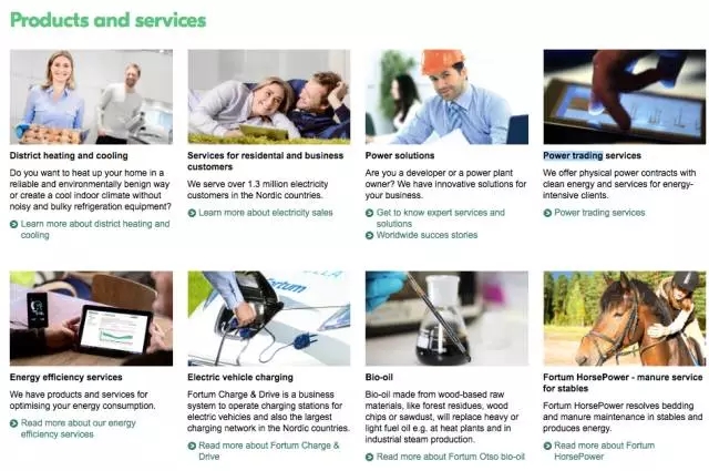 大家可以到富騰公司的網(wǎng)站http://www.fortum.com/對(duì)比一下這家企業(yè)的能源產(chǎn)品和服務(wù)與中國(guó)傳統(tǒng)能源公司的差異,或許,這可能將是我們下一步將走的路。