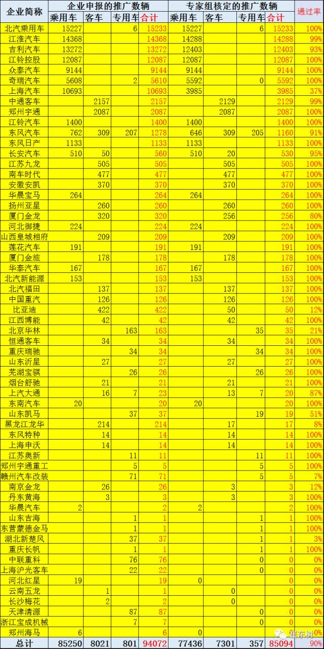 從推廣地區(qū)的省份來看,安徽申報(bào)20374輛最多(江淮和奇瑞兩大新能源汽車企業(yè)在此),北京15233輛,江西13600輛,上海10752輛,浙江17957輛。推廣大戶陜西和廣東省等幾個(gè)省目前沒有申報(bào),應(yīng)該還是在走地方政府審核流程。比亞迪的新能源在陜西和廣東等多地有生產(chǎn),暫且多放到陜西。