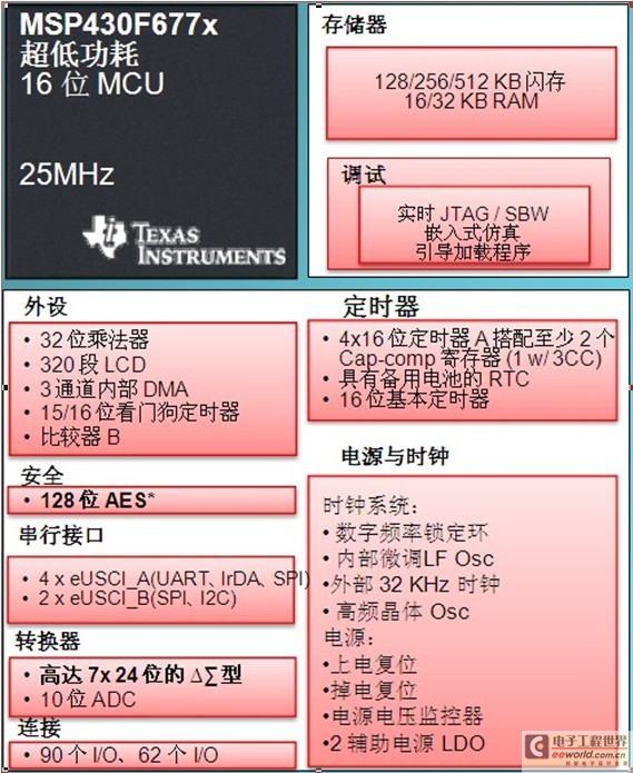 在智能電表應用層面上,可以說是TI在貫穿在整個智聯(lián)電網的各個環(huán)節(jié)中最為擅長的部分,TI在15年前就切入這一應用,針對中國的市場推出了8000萬片計量表計,包括電表、水表、氣表的各種計量芯片和主處理器。TI已經推出針對智能電表應用的SoC方案,TI推出的SoC計量前端,是高集程度的SoC芯片,單芯片可以完成三相電表的設計。這一方案采用了MSP430超低功耗的16位MCU,可以完成7路24比特的高精度采樣和之后的電能分析集成。同時,還提供了比較大的內部存儲器單元,無需在片外加上Flash或者SDRAM來完成特定的功能,也不需要在單芯片上加上外設存儲器就可以完成低成本的三相電表計量設計。安全方面,包括實時RTC和180比特AEC硬件加密模塊都已經集成到了這個芯片上。它還有非常豐富的外設,包括串口、并口和數(shù)據(jù)轉換器等。