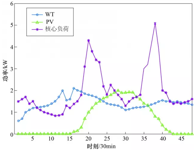 風(fēng)能和太陽能雖然具有互補(bǔ)的特性,但因受自然季節(jié)和氣候的影響,使其具有較強(qiáng)的間歇性和隨機(jī)性,直接接入電網(wǎng)會(huì)引發(fā)電能波動(dòng),給微電網(wǎng)系統(tǒng)帶來電能質(zhì)量和穩(wěn)定性的挑戰(zhàn)。解決這一問題的關(guān)鍵在于儲(chǔ)能系統(tǒng),目前普遍使用蓄電池儲(chǔ)能來平衡供電,蓄電池的充放電效率較高,能夠適應(yīng)負(fù)荷動(dòng)態(tài)變化以及風(fēng)光出力波動(dòng)的特性。風(fēng)能、太陽能等分布式電源和負(fù)荷以及儲(chǔ)能系統(tǒng)通過微電網(wǎng)能量管理系統(tǒng)進(jìn)行有效整合,微電網(wǎng)能量管理系統(tǒng)通過協(xié)調(diào)各微電源、負(fù)荷和儲(chǔ)能系統(tǒng)的運(yùn)行能夠提高微電網(wǎng)運(yùn)行的可靠性和經(jīng)濟(jì)性,是系統(tǒng)穩(wěn)定運(yùn)行的重要保障。