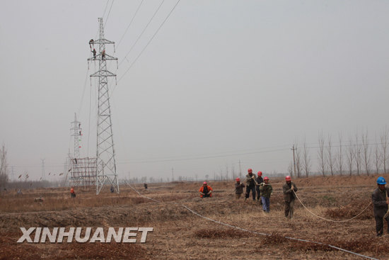 4月4日,國家電網(wǎng)山東濱州供電公司電建工人正在施工。