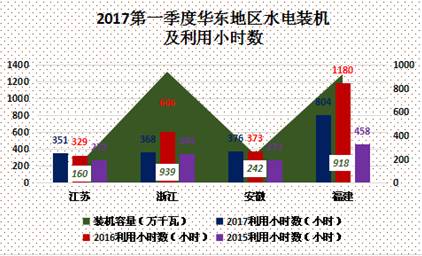 從水電設(shè)備平均利用小時(shí)數(shù)上看,2017年春季,華東地區(qū)僅福建省高于全國(guó)平均水平,為804小時(shí),江蘇省最低僅為351小時(shí)。與去年同期相比,作為華東水電大省,浙江、福建水電設(shè)備平均利用小時(shí)數(shù)下滑幅度較大,分別下滑248小時(shí)、376小時(shí)。而江蘇、安徽表現(xiàn)相對(duì)穩(wěn)定,并出現(xiàn)一定幅度的上漲。