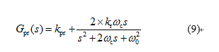 將指令電流i*s與實際測得的電流is相減得到電流誤差信號,再將電流誤差信號送入準(zhǔn)諧振PR控制器進行控制。準(zhǔn)諧振PR控制器在很多文獻[20-21]都有應(yīng)用,它在保持高增益的同時,又可減少頻率偏移對控制效果造成的影響,其傳遞函數(shù)為