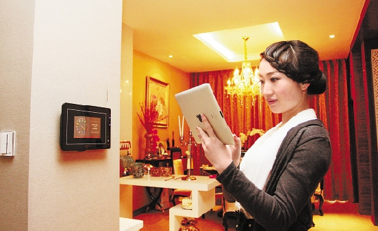 在客廳顯眼處,有一塊液晶顯示屏,“通過它,下班回到家前,您輕輕一按掌上電腦,燈光為您點亮,空調(diào)電視自動開啟,還可以指令電飯煲燒上飯,一回家就可以聞到飯香。”客戶經(jīng)理小王輕點ipad演示,這些功能盡在眼前。這個顯示屏其實是實現(xiàn)家庭智能用電服務(wù)的核心設(shè)備——智能交互終端。