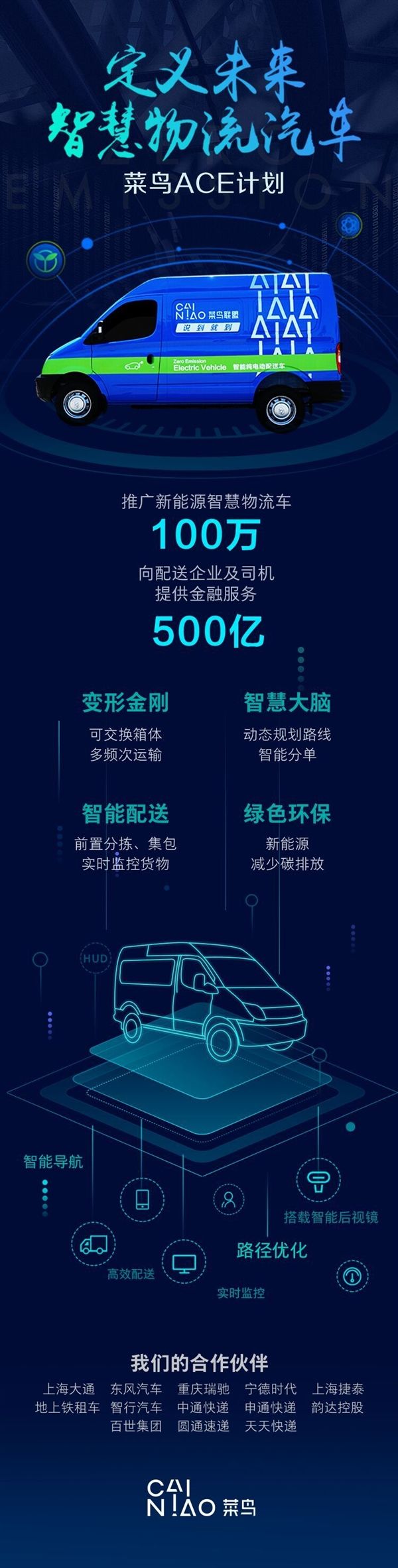 中國(guó)儲(chǔ)能網(wǎng)訊:5月22日,菜鳥網(wǎng)絡(luò)發(fā)布代號(hào)為“ACE”的未來綠色智慧物流汽車計(jì)劃,目標(biāo)是打造并推廣100萬輛新能源物流車。阿里巴巴董事局主席馬云在當(dāng)天的演講中表示,菜鳥網(wǎng)絡(luò)將推出100萬輛新能源智慧物流車,“真的就是個(gè)小目標(biāo),這100萬輛車就是100萬個(gè)流動(dòng)倉庫在全中國(guó)各個(gè)城市跑?!?