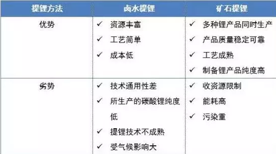 不同提鋰方法優(yōu)缺點(diǎn)對比