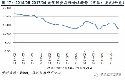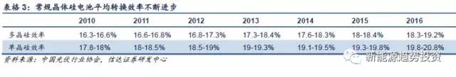 我們預(yù)計(jì)在2017年下半年,單多晶拉鋸的局面可能會(huì)重現(xiàn)。這將會(huì)加大行業(yè)內(nèi)競(jìng)爭(zhēng),廠商將會(huì)紛紛加大研發(fā)投入,積極推動(dòng)技術(shù)革新,不斷提高組件效率,減低制造成本,這將會(huì)促使光伏發(fā)電度電成本的降低,最終達(dá)到平價(jià)上網(wǎng)的水平。