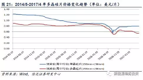 多晶硅料的下游環(huán)節(jié)是硅片的制作,早在2015年,金剛線切片技術(shù)就已在單晶領(lǐng)域?qū)崿F(xiàn)全面應(yīng)用,我們預(yù)計(jì)在2017年下半年,引入金剛線切片技術(shù)所生產(chǎn)出來(lái)的多晶組件有望投入市場(chǎng)。另外,鑄錠單晶也為處于該環(huán)節(jié)的廠商提供了另外一條降本的思路,值得關(guān)注。