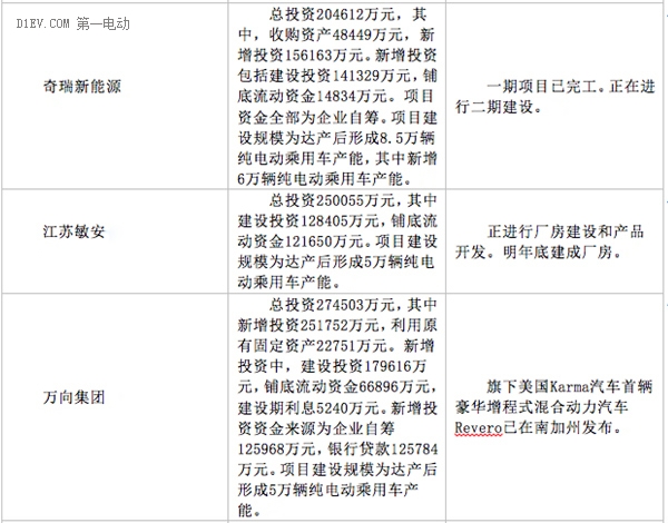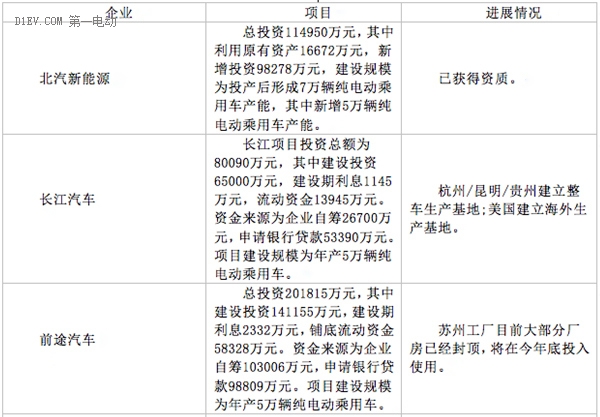 15家企業(yè)新建純電動乘用車項目進(jìn)展情況