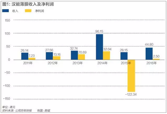 停牌兩年后,漢能薄膜發(fā)電出現(xiàn)了觸底回升的跡象。4月26日,漢能薄膜發(fā)電發(fā)布2016年報(bào)。2016年漢能薄膜發(fā)電收入約44.8億港元,同比增長(zhǎng)59%;毛利約26億港元,同比增長(zhǎng)89%;凈利潤(rùn)扭虧為盈,2016年凈利約2.5億港元。