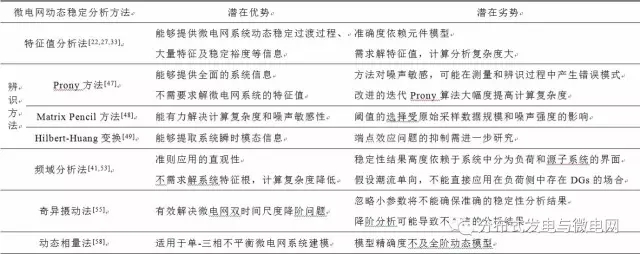 表2 微電網(wǎng)各種動(dòng)態(tài)穩(wěn)定分析方法潛在的優(yōu)勢(shì)和劣勢(shì)