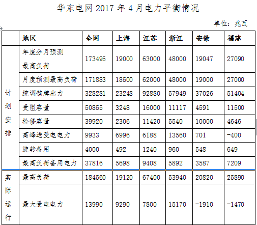 2017年4月華東電網(wǎng)無錯避峰電力。