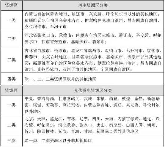 1、分區(qū)域核定電價(jià),依據(jù)當(dāng)?shù)刭Y源特點(diǎn)及建設(shè)成本劃分不同區(qū)域相應(yīng)核定上網(wǎng)標(biāo)桿電價(jià),其中風(fēng)電分為四類資源區(qū)、光伏發(fā)電分為三類資源區(qū)。