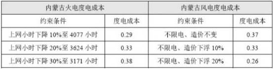 表5:特定約束條件下內(nèi)蒙古火電、風(fēng)電度電成本比較