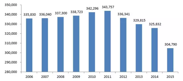 (圖2:美國煤炭火力發(fā)電裝機總量走勢圖 單位:MW 來源美國能源信息署EIA)