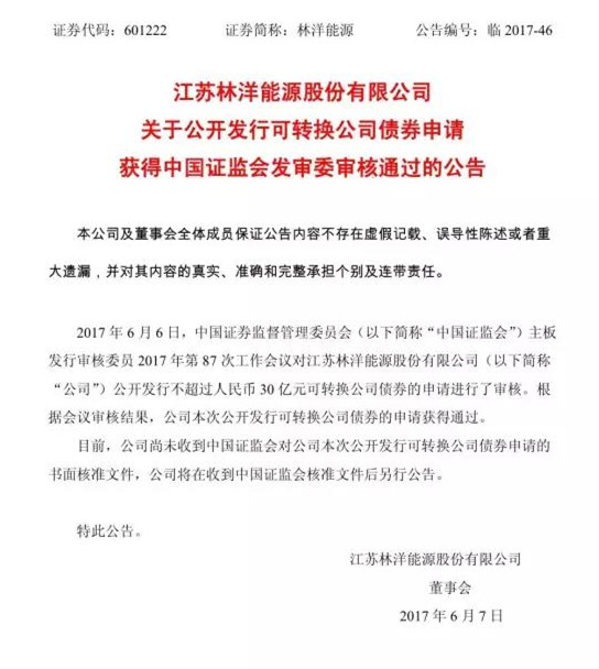 此次,中國證監(jiān)會通過林洋能源30億可轉(zhuǎn)債的申請,同樣是對林洋能源業(yè)務(wù)發(fā)展以及戰(zhàn)略目標(biāo)的高度認(rèn)可。