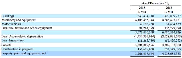 我們看行業(yè)最大的組件企業(yè)晶科能源,2016年年底累計固定資產(chǎn)64.87億人民幣,累計折舊20.28億人民幣,凈固定資產(chǎn)47.38億。