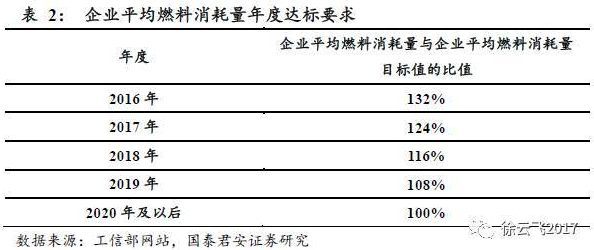 具體車型油耗量目標(biāo)值見工信部發(fā)布的GB27999-2014《乘用車燃料消耗量評價方法及指標(biāo)》。此處無須考慮新能源汽車的放大倍數(shù)。