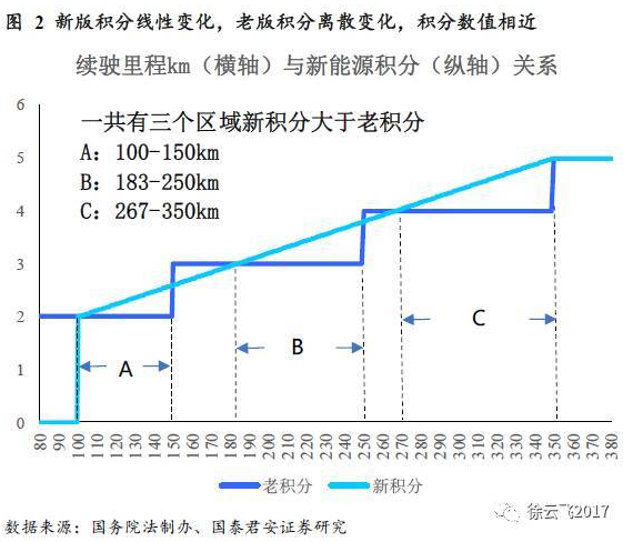 為了方便計算,本報告的舉例測算均以離散的老版積分以及1倍新能源積分進(jìn)行測算。