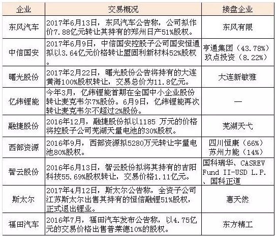 據(jù)了解,從去年以來,包括中信國安、東風汽車、億緯鋰能、融捷股份、西部資源、智云股份、斯太爾、福田汽車等上市公司都對旗下部分業(yè)務進行轉讓或減持,交易金額超過30億元。
