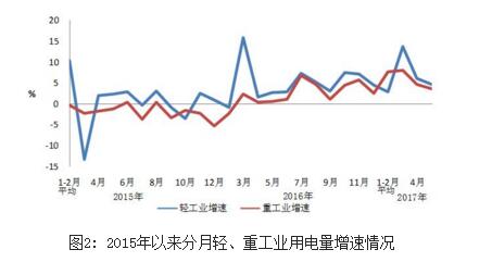 1-5月份,全國工業(yè)用電量16827億千瓦時(shí),同比增長6.3%,增速比上年同期提高6.0個(gè)百分點(diǎn),占全社會(huì)用電量的比重為69.4%,對全社會(huì)用電量增長的貢獻(xiàn)率為69%。其中,輕工業(yè)用電量為2826億千瓦時(shí),同比增長6.1%,增速比上年同期提高2.7個(gè)百分點(diǎn);重工業(yè)用電量為14001億千瓦時(shí),同比增長6.4%,增速比上年同期提高6.6個(gè)百分點(diǎn)。