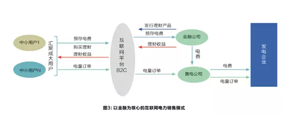 基于對上述問題的思考,在利用互聯(lián)網(wǎng)平臺的同時,需要建立一個能打破常規(guī)、互惠互利、合作共贏的電力營銷模式。在互聯(lián)網(wǎng)營銷平臺中引入金融手段,為電力買賣雙方建立以金融為基礎(chǔ)的利益核心,通過理財、投資等方式的利益交換建立穩(wěn)定的互聯(lián)互補(bǔ)關(guān)系。