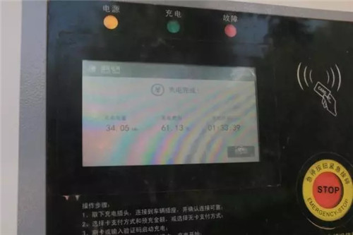 充電收費標準分為峰電價、平電價和谷電價,服務費單價都為0.8元/千瓦時。記者從20%的電量到充滿一輛綜合續(xù)航里程為230km的車型,時間大約需要1.5小時,費用61.13元,停車費15元/小時。