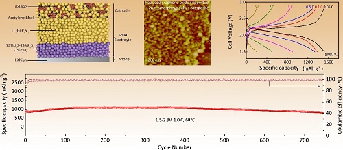 圖:全固態(tài)鋰硫電池結(jié)構(gòu)示意圖及電池性能