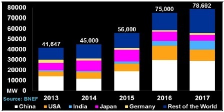 8、盡管中國需求停滯不前,2017年太陽能整體需求仍可能增長靚麗