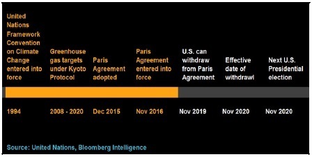 美國總統(tǒng)唐納德?特朗普決定本國退出《巴黎氣候變化協(xié)定》,這反而讓美國太陽能和風(fēng)能產(chǎn)業(yè)的清潔能源政策前景更不明朗。按計劃,美國正式退出協(xié)定的時間大概是2020年。因此退出協(xié)定可能使氣候變化升級為2020年美國總統(tǒng)競選的重要問題,并促使政界兩極分化。短期內(nèi),州政府的政策和聯(lián)邦政府的稅收優(yōu)惠將支持風(fēng)能和太陽能的需求。