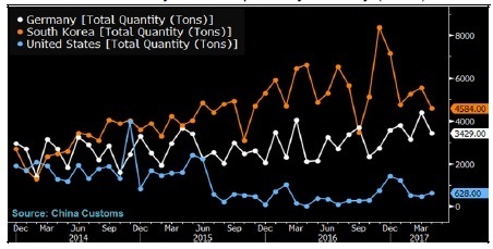 美國制造商Suniva運用1974年貿(mào)易法中的“201條款”提起貿(mào)易申訴,指控美國進(jìn)口的硅基太陽能電池板對其造成巨大受害。這一貿(mào)易案可能被美國政府利用,幫助緩解中國對進(jìn)口美國供應(yīng)多晶硅的限制。如果美國國際貿(mào)易委員會判定Suniva的申訴有法律效力,特朗普就會決定拿出何種最終行動。中國對進(jìn)口美國多晶硅的關(guān)稅壓制了REC Silicon和Hemlock Semiconductor等美國多晶硅供應(yīng)商的需求。